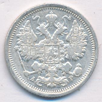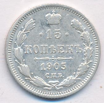 Лицевая сторона — гербовый орел, оборотная —обозначение номинала (15 копеекъ), окруженное венком из лавровой и дубовой ветвей и дата.