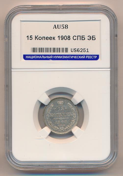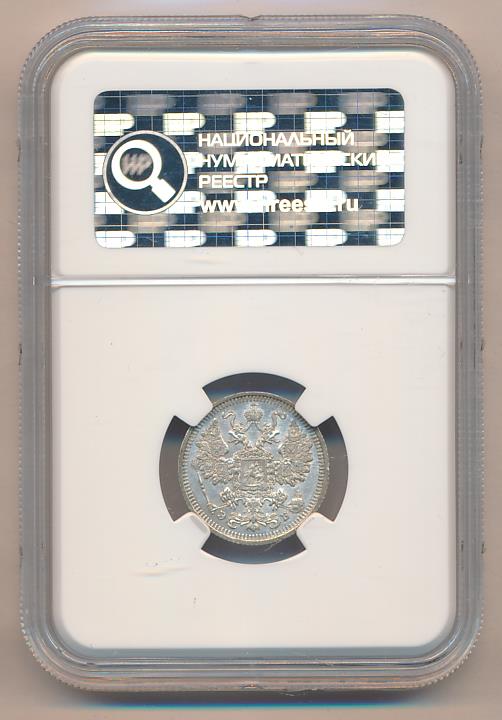 Лицевая сторона — гербовый орел, оборотная —обозначение номинала (15 копеекъ), окруженное венком из лавровой и дубовой ветвей и дата.