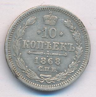 Лицевая сторона — гербовый орел, оборотная —обозначение номинала (10 копеекъ), окруженное венком из лавровой и дубовой ветвей и дата.