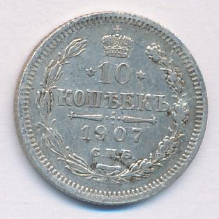 Лицевая сторона — гербовый орел, оборотная —обозначение номинала (10 копеекъ), окруженное венком из лавровой и дубовой ветвей и дата.