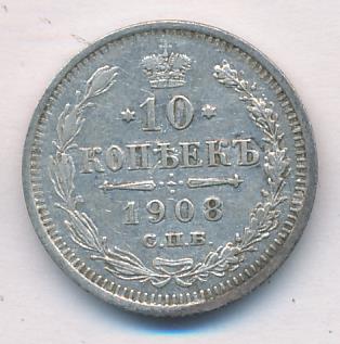 Лицевая сторона — гербовый орел, оборотная —обозначение номинала (10 копеекъ), окруженное венком из лавровой и дубовой ветвей и дата.