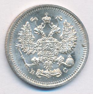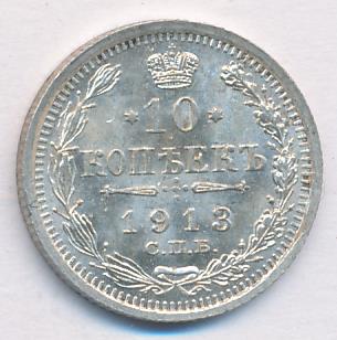 Лицевая сторона — гербовый орел, оборотная —обозначение номинала (10 копеекъ), окруженное венком из лавровой и дубовой ветвей и дата.