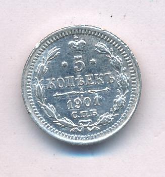 Лицевая сторона — гербовый орел, оборотная —обозначение номинала (5 копеекъ), окруженное венком из лавровой и дубовой ветвей и дата.