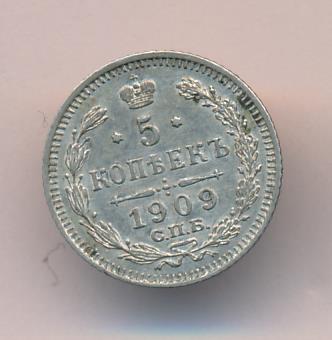 Лицевая сторона — гербовый орел, оборотная —обозначение номинала (5 копеекъ), окруженное венком из лавровой и дубовой ветвей и дата.