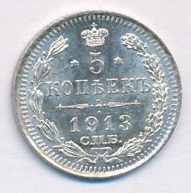 Лицевая сторона — гербовый орел, оборотная —обозначение номинала (5 копеекъ), окруженное венком из лавровой и дубовой ветвей и дата.