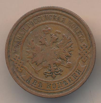Лицевая сторона — двуглавый орел, надпись МЕДНАЯ РОССIЙСКАЯ МОНЕТА и обозначение номинала (две копейки); оборотная — обозначение номинала (2 копейки) в бусовом ободке и дата. Нормативный вес — 6,55 грамма, гурт рубчатый.