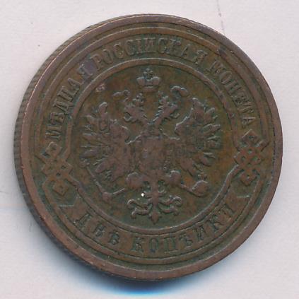 Лицевая сторона — двуглавый орел, надпись МЕДНАЯ РОССIЙСКАЯ МОНЕТА и обозначение номинала (две копейки); оборотная — обозначение номинала (2 копейки) в бусовом ободке и дата. Нормативный вес — 6,55 грамма, гурт рубчатый.