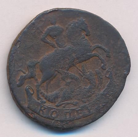 Производство ведется на московском Красном, Екатеринбургском и Сестрорецком дворах. Лицевая сторона — Георгий Победоносец и обозначение номинала (копейка) в картуше, оборотная — сложный симметричный вензель Елизаветы Петровны и дата. Нормативный вес — 10,24 грамма, гурт — сетка.