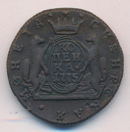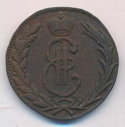 Лицевая сторона - два соболя поддерживают щит с обозначением номинала (копейка) под короной, надпись «СИБИРСКАЯ МОНЕТА». Оборотная — вензель Екатерины II в венке из пальмовой и лавровой ветвей. Гурт — шнур, вес — 6,55 грамма.