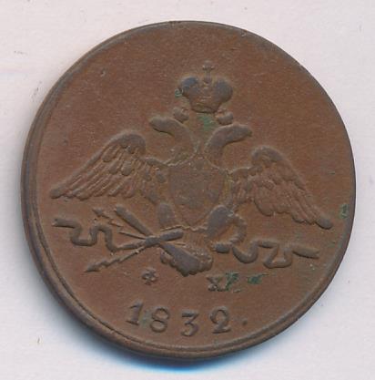 На новой серии медных монет оформление герба как на золотых (с 1817 года) и серебряных (с 1826 года), хотя еще в 1830 году было указано сделать для них орла как на платиновых. Таким образом, вышедшие в 1832 году в обращение новые медные монеты изначально имеют устаревшее оформление, а золотые и серебряные с этого же 1832 года — новое.
