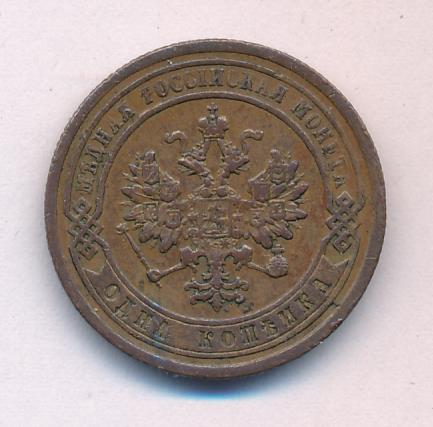 Лицевая сторона — двуглавый орел, надпись МЕДНАЯ РОССIЙСКАЯ МОНЕТА и обозначение номинала (одна копейка); оборотная — обозначение номинала (1 копейка) в бусовом ободке и дата. Нормативный вес — 3,28 грамма, гурт рубчатый.