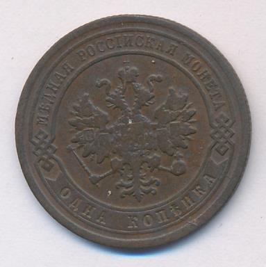 Лицевая сторона — двуглавый орел, надпись МЕДНАЯ РОССIЙСКАЯ МОНЕТА и обозначение номинала (одна копейка); оборотная — обозначение номинала (1 копейка) в бусовом ободке и дата. Нормативный вес — 3,28 грамма, гурт рубчатый.
