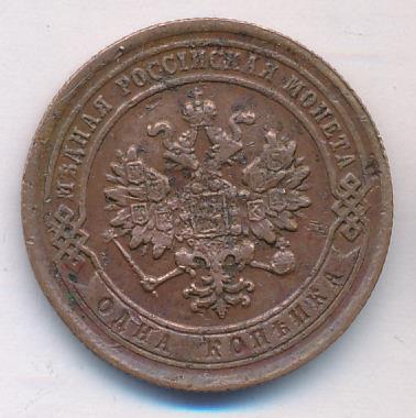 Лицевая сторона — двуглавый орел, надпись МЕДНАЯ РОССIЙСКАЯ МОНЕТА и обозначение номинала (одна копейка); оборотная — обозначение номинала (1 копейка) в бусовом ободке и дата. Нормативный вес — 3,28 грамма, гурт рубчатый.