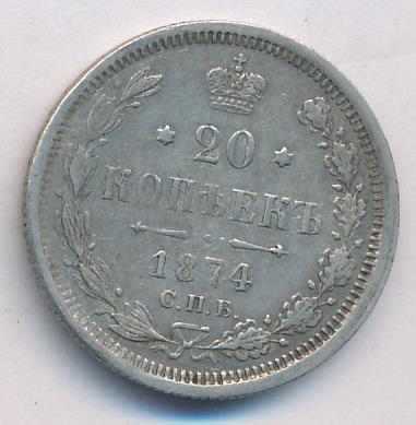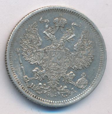 Лицевая сторона — гербовый орел, оборотная —обозначение номинала (20 копеекъ), окруженное венком из лавровой и дубовой ветвей и дата.