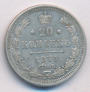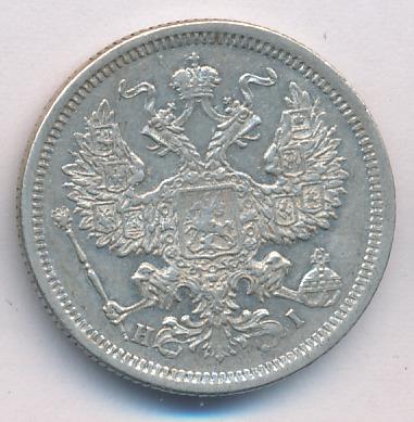 Лицевая сторона — гербовый орел, оборотная —обозначение номинала (20 копеекъ), окруженное венком из лавровой и дубовой ветвей и дата.