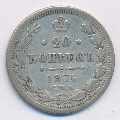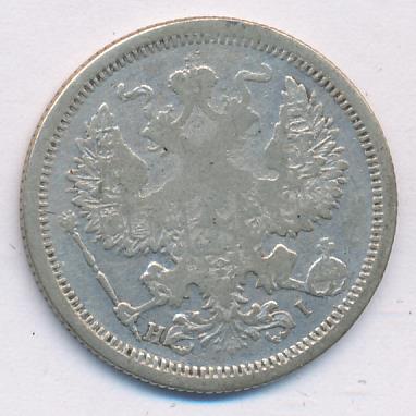 Лицевая сторона — гербовый орел, оборотная —обозначение номинала (20 копеекъ), окруженное венком из лавровой и дубовой ветвей и дата.
