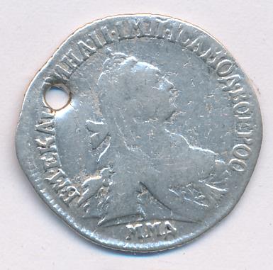 Выделяют два типа - «с шарфом на шее» и без него. На оборотной стороне монеты — пятнадцать счетных точек. Лицевая сторона — портрет императрицы и надпись «Б М ЕКАТЕРИНА II IМП I САМОД ВСЕРОС», оборотная — двуглавый орел, обозначение номинала цифрой и счетными точками и дата. Проба — 750, нормативный вес — 3,56 грамма, гурт — шнур.