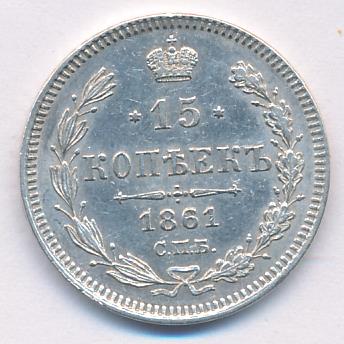 В 1861 году из-за перегруженности Петербургского двора заказы на чеканку части 20, 15 и 10 копеек размещаются на Парижском и Страсбургском монетных дворах. На этих монетах тот же знак двора СПБ, но отсутствует знак минцмейстера.