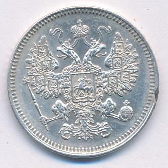 Лицевая сторона — гербовый орел, оборотная —обозначение номинала (15 копеекъ), окруженное венком из лавровой и дубовой ветвей и дата.
