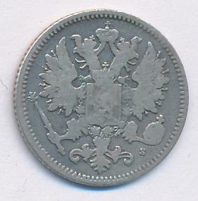 Лицевая сторона — российский двуглавый орел с гербом Великого княжества Финляндского на груди, оборотная — номинал и дата в венке из дубовых листьев. Проба — 750, нормативный вес — 1,27 грамма, гурт рубчатый.