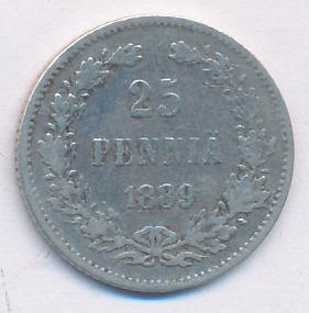Лицевая сторона — российский двуглавый орел с гербом Великого княжества Финляндского на груди, оборотная — номинал и дата в венке из дубовых листьев. Проба — 750, нормативный вес — 1,27 грамма, гурт рубчатый.