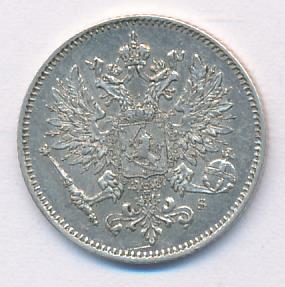 Лицевая сторона — российский двуглавый орел с гербом Великого княжества Финляндского на груди, оборотная — номинал и дата в венке из дубовых листьев. Проба — 750, нормативный вес — 1,27 грамма, гурт рубчатый.