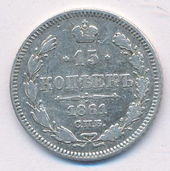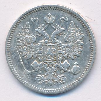 Лицевая сторона — гербовый орел, оборотная —обозначение номинала (15 копеекъ), окруженное венком из лавровой и дубовой ветвей и дата.
