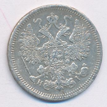 Лицевая сторона — гербовый орел, оборотная —обозначение номинала (15 копеекъ), окруженное венком из лавровой и дубовой ветвей и дата.