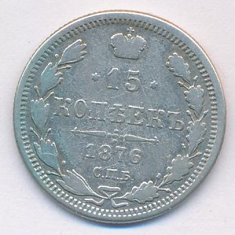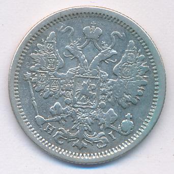 Лицевая сторона — гербовый орел, оборотная —обозначение номинала (15 копеекъ), окруженное венком из лавровой и дубовой ветвей и дата.