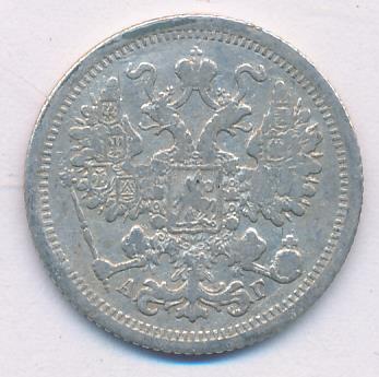 Лицевая сторона — гербовый орел, оборотная —обозначение номинала (15 копеекъ), окруженное венком из лавровой и дубовой ветвей и дата.