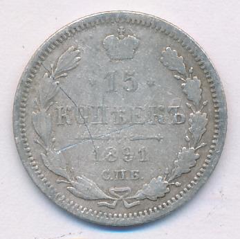 Лицевая сторона — гербовый орел, оборотная —обозначение номинала (15 копеекъ), окруженное венком из лавровой и дубовой ветвей и дата.