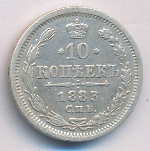 Лицевая сторона — гербовый орел, оборотная —обозначение номинала (10 копеекъ), окруженное венком из лавровой и дубовой ветвей и дата.