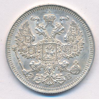 Лицевая сторона — гербовый орел, оборотная —обозначение номинала (20 копеекъ), окруженное венком из лавровой и дубовой ветвей и дата.