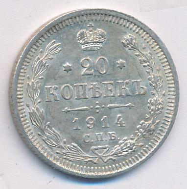 Лицевая сторона — гербовый орел, оборотная —обозначение номинала (20 копеекъ), окруженное венком из лавровой и дубовой ветвей и дата.