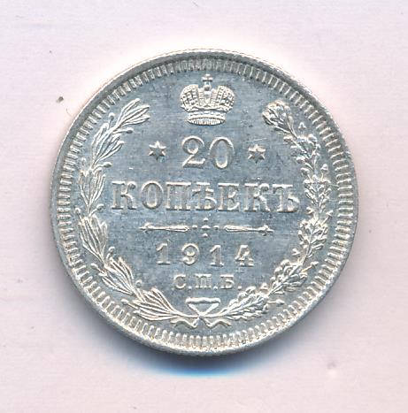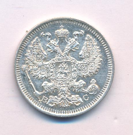 Лицевая сторона — гербовый орел, оборотная —обозначение номинала (20 копеекъ), окруженное венком из лавровой и дубовой ветвей и дата.
