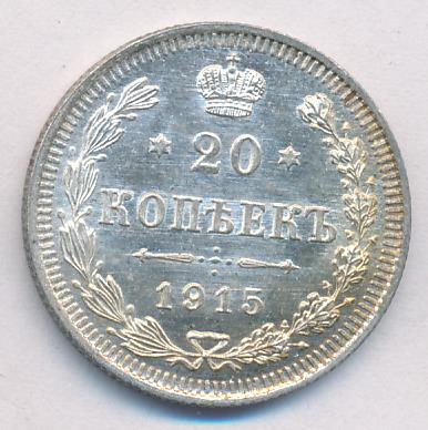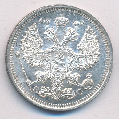 Лицевая сторона — гербовый орел, оборотная —обозначение номинала (20 копеекъ), окруженное венком из лавровой и дубовой ветвей и дата.