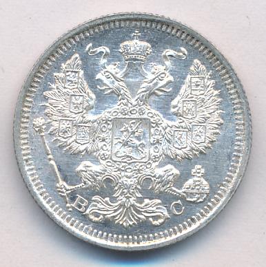 Лицевая сторона — гербовый орел, оборотная —обозначение номинала (20 копеекъ), окруженное венком из лавровой и дубовой ветвей и дата.