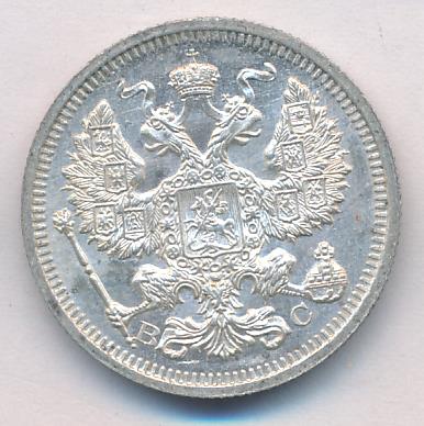 Лицевая сторона — гербовый орел, оборотная —обозначение номинала (20 копеекъ), окруженное венком из лавровой и дубовой ветвей и дата.