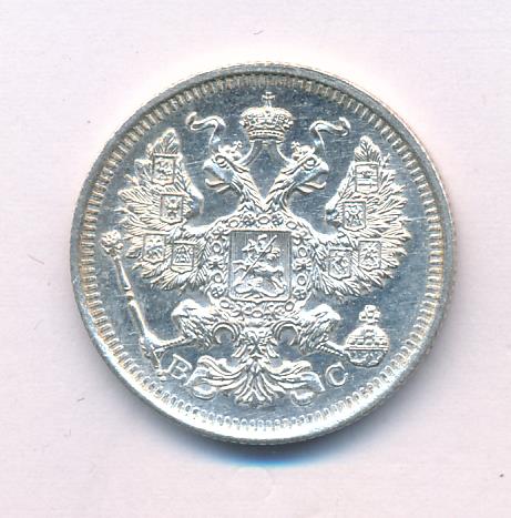 Лицевая сторона — гербовый орел, оборотная —обозначение номинала (20 копеекъ), окруженное венком из лавровой и дубовой ветвей и дата.