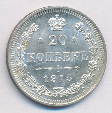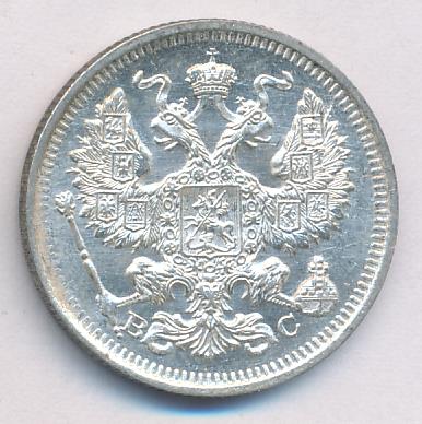 Лицевая сторона — гербовый орел, оборотная —обозначение номинала (20 копеекъ), окруженное венком из лавровой и дубовой ветвей и дата.