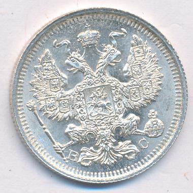 Лицевая сторона — гербовый орел, оборотная —обозначение номинала (20 копеекъ), окруженное венком из лавровой и дубовой ветвей и дата.