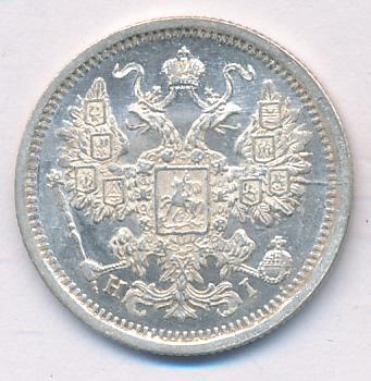 Лицевая сторона — гербовый орел, оборотная —обозначение номинала (15 копеекъ), окруженное венком из лавровой и дубовой ветвей и дата.