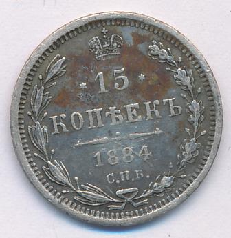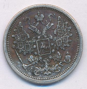 Лицевая сторона — гербовый орел, оборотная —обозначение номинала (15 копеекъ), окруженное венком из лавровой и дубовой ветвей и дата.