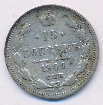 Лицевая сторона — гербовый орел, оборотная —обозначение номинала (15 копеекъ), окруженное венком из лавровой и дубовой ветвей и дата.