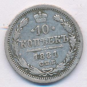 Лицевая сторона — гербовый орел, оборотная —обозначение номинала (10 копеекъ), окруженное венком из лавровой и дубовой ветвей и дата.