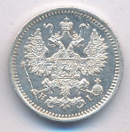 Лицевая сторона — гербовый орел, оборотная —обозначение номинала (5 копеекъ), окруженное венком из лавровой и дубовой ветвей и дата.