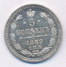 Лицевая сторона — гербовый орел, оборотная —обозначение номинала (5 копеекъ), окруженное венком из лавровой и дубовой ветвей и дата.