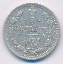 Лицевая сторона — гербовый орел, оборотная —обозначение номинала (5 копеекъ), окруженное венком из лавровой и дубовой ветвей и дата.