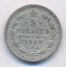 Лицевая сторона — гербовый орел, оборотная —обозначение номинала (5 копеекъ), окруженное венком из лавровой и дубовой ветвей и дата.