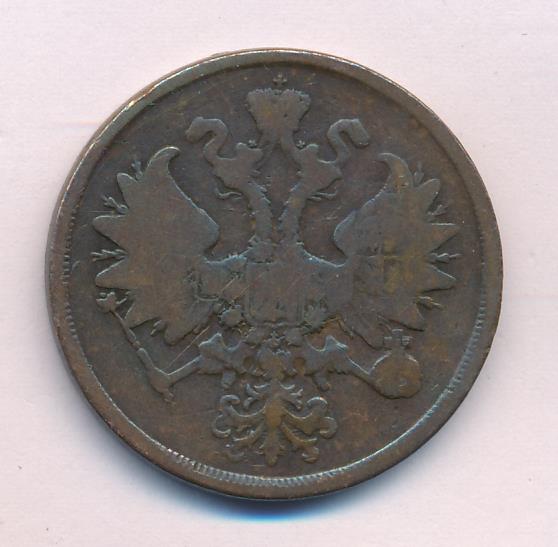 Лицевая сторона — двуглавый орел, оборотная — обозначение номинала (2 копейки) и дата. Нормативный вес — 10,24 грамма, гурт гладкий.